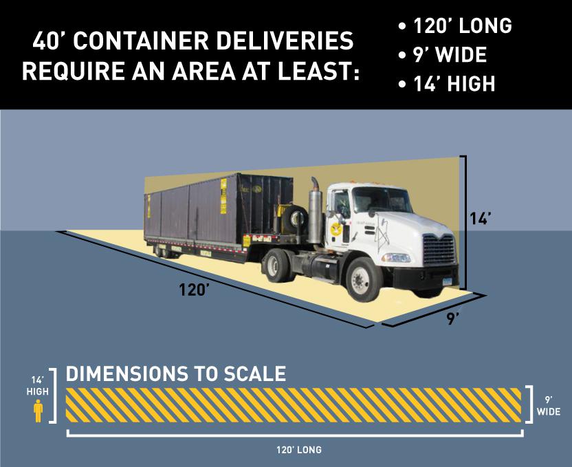 It is important for you to determine if our delivery vehicle will have enough space to place a 40' container at your desired location.